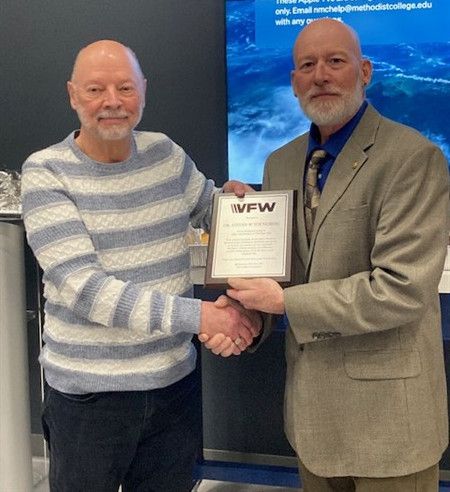 Dr. Steven Youngberg (left) VFW Post 1581 past QM/Adj. was awarded a service to the post award.